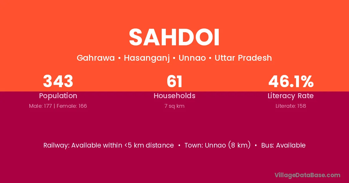 Unnao (8 km) is the nearest town to Sahdoi village for major economic activities and is located approximately 8 km away.