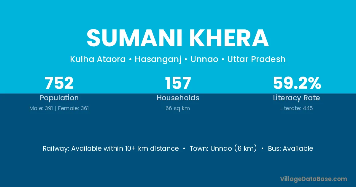 Unnao (6 km) is the nearest town to Sumani Khera village for major economic activities and is located approximately 6 km away.