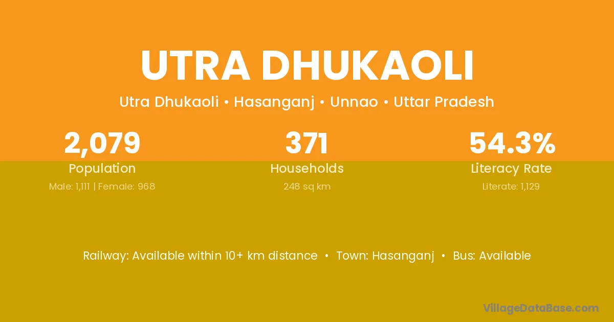 Utra Dhukaoli village has a total population of 2,079 people, of which 1,111 are males and 968 are females.
