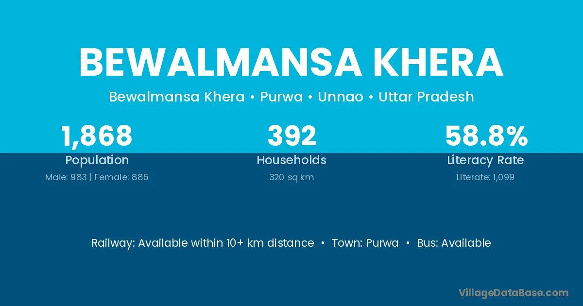 Bewalmansa Khera village has a total population of 1,868 people, of which 983 are males and 885 are females.