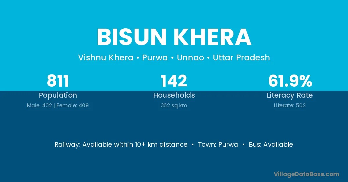 Bisun Khera village has a total population of 811 people, of which 402 are males and 409 are females.
