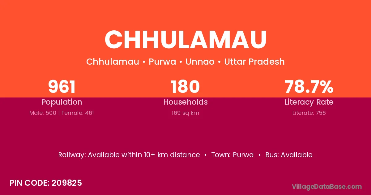 Chhulamau village has a total population of 961 people, of which 500 are males and 461 are females.