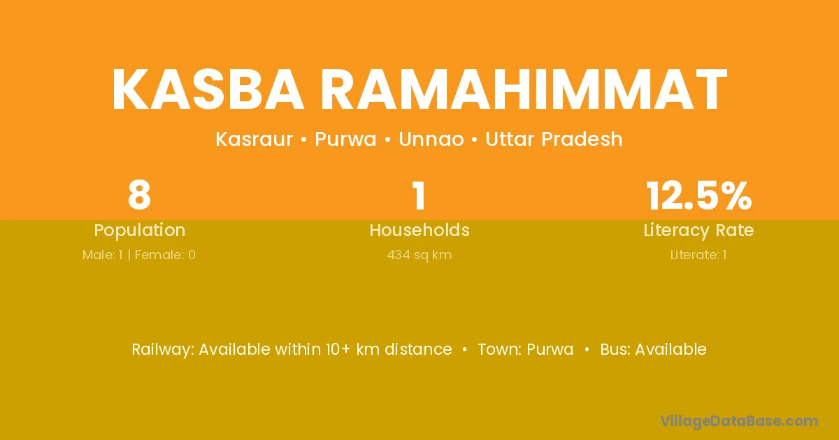 Kasba Ramahimmat village has a total population of 8 people, of which 1 are males and 0 are females.