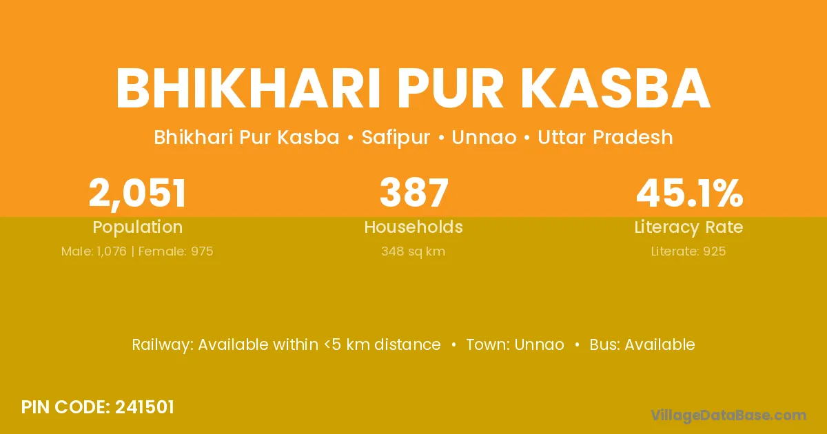 Unnao is the nearest town to Bhikhari Pur Kasba village for major economic activities