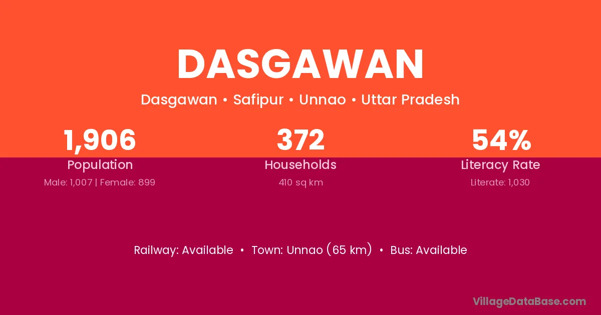 Unnao (65 km) is the nearest town to Dasgawan village for major economic activities and is located approximately 65 km away.