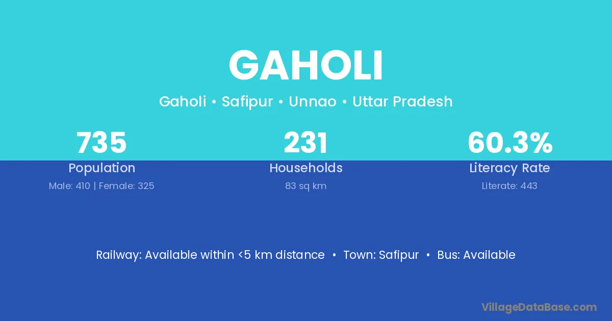 Gaholi village has a total population of 735 people, of which 410 are males and 325 are females.