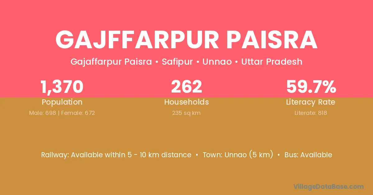 Gajffarpur Paisra village has a total population of 1,370 people, of which 698 are males and 672 are females.