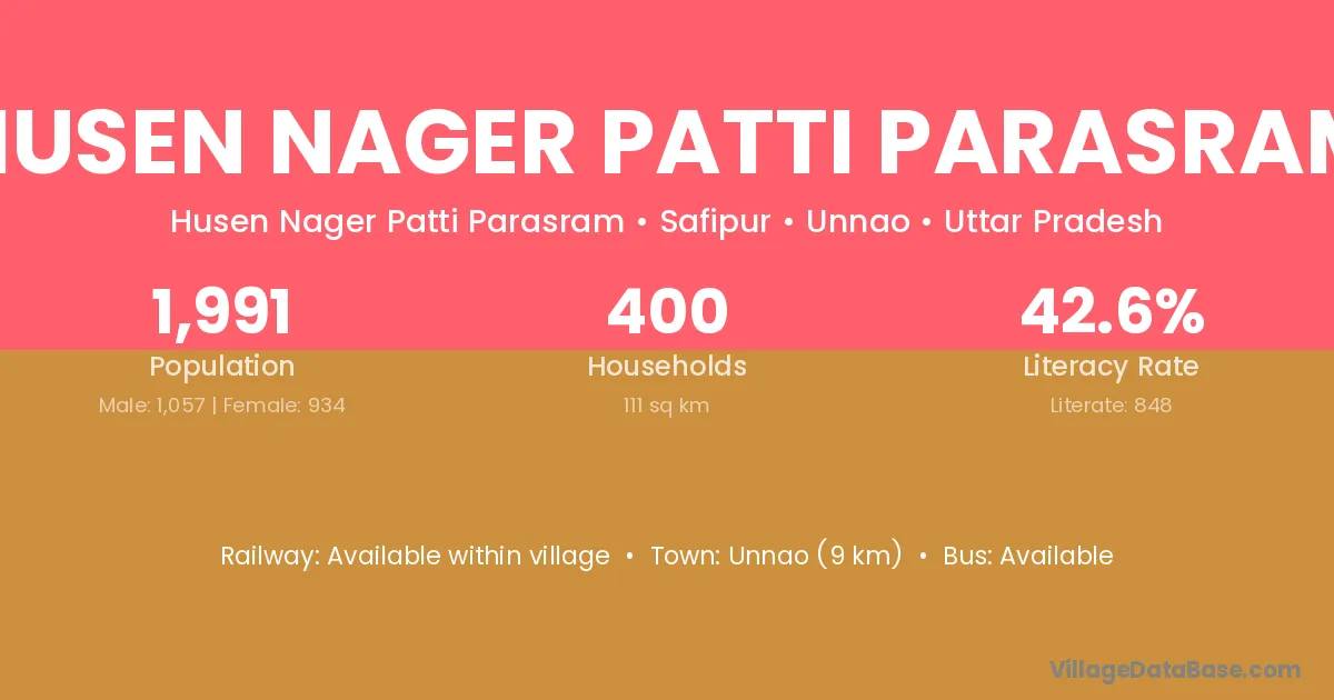 Unnao (9 km) is the nearest town to Husen Nager Patti Parasram village for major economic activities and is located approximately 9 km away.