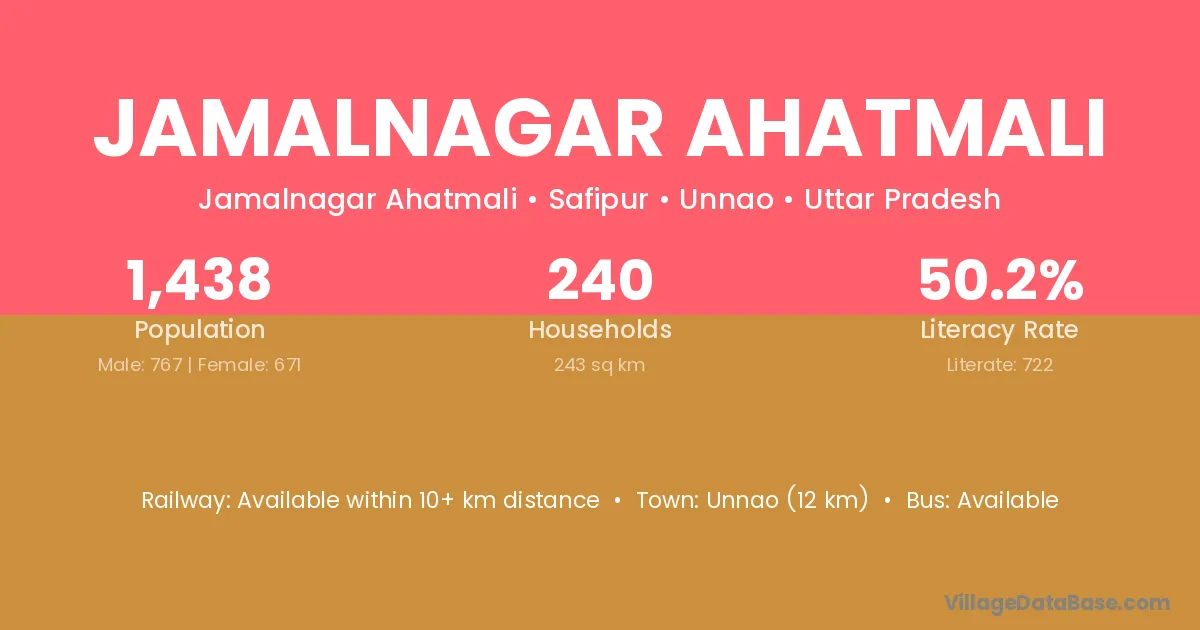 Unnao (12 km) is the nearest town to Jamalnagar Ahatmali village for major economic activities and is located approximately 12 km away.