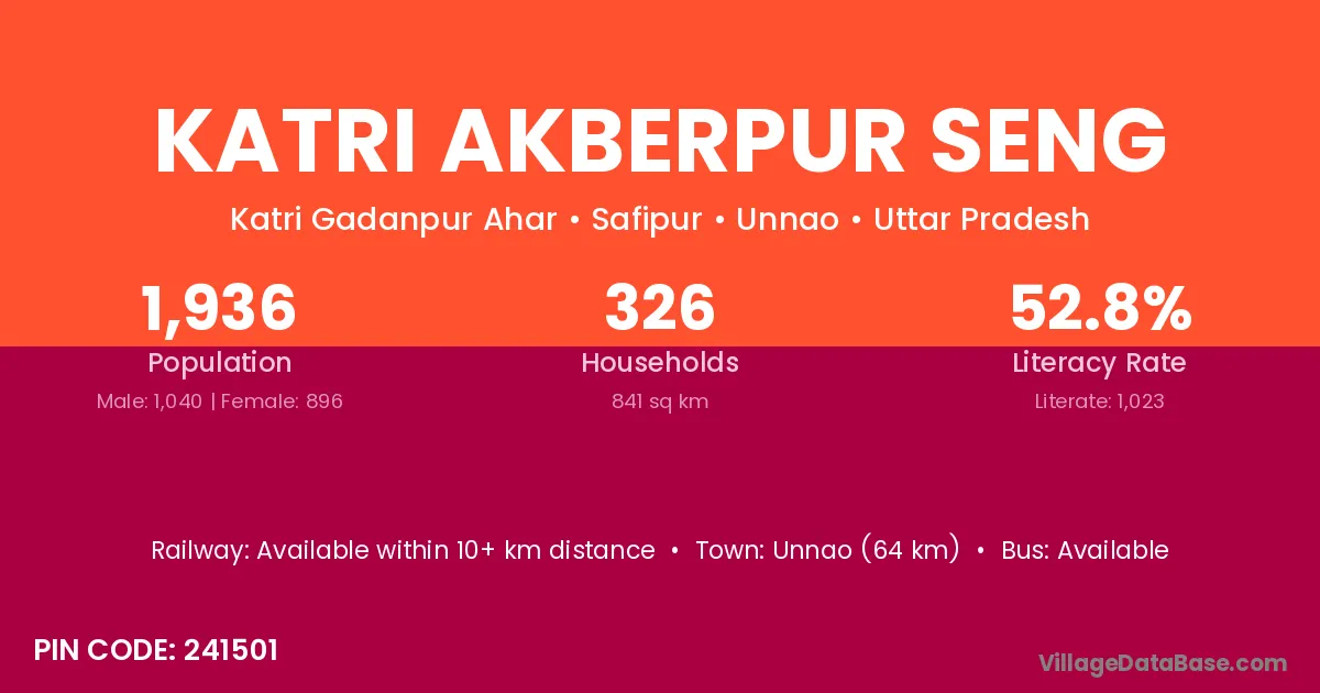 Katri Akberpur Seng village has a total population of 1,936 people, of which 1,040 are males and 896 are females.