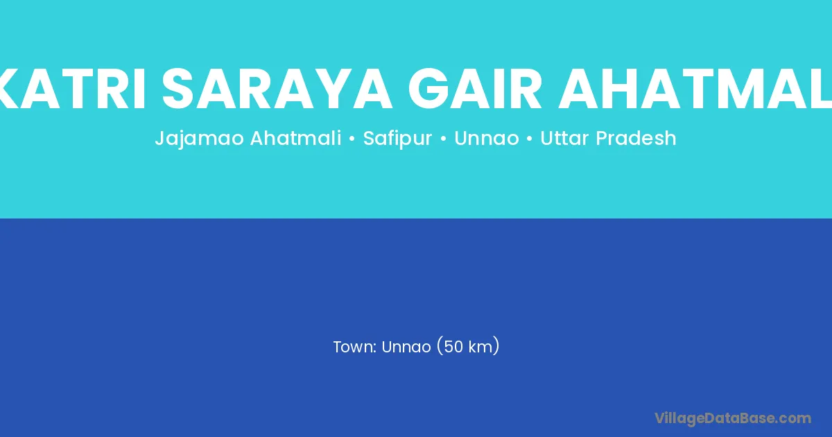 Unnao (50 km) is the nearest town to Katri Saraya Gair Ahatmali village for major economic activities and is located approximately 50 km away.