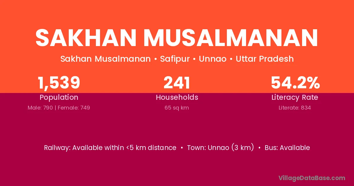 Sakhan Musalmanan village has a total population of 1,539 people, of which 790 are males and 749 are females.