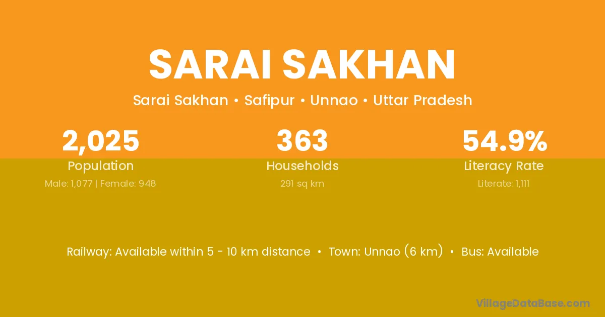 Unnao (6 km) is the nearest town to Sarai Sakhan village for major economic activities and is located approximately 6 km away.