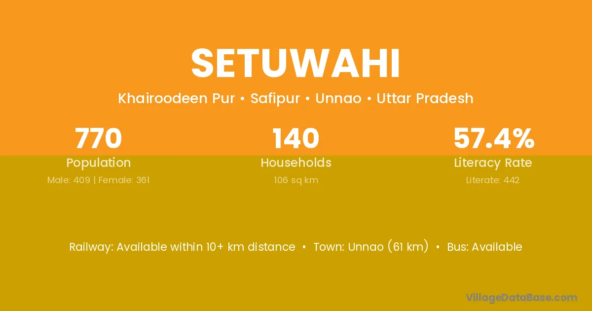 Unnao (61 km) is the nearest town to Setuwahi village for major economic activities and is located approximately 61 km away.