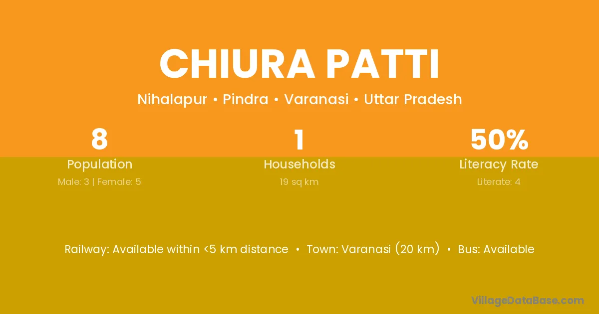 Varanasi (20 km) is the nearest town to Chiura Patti village for major economic activities and is located approximately 20 km away.