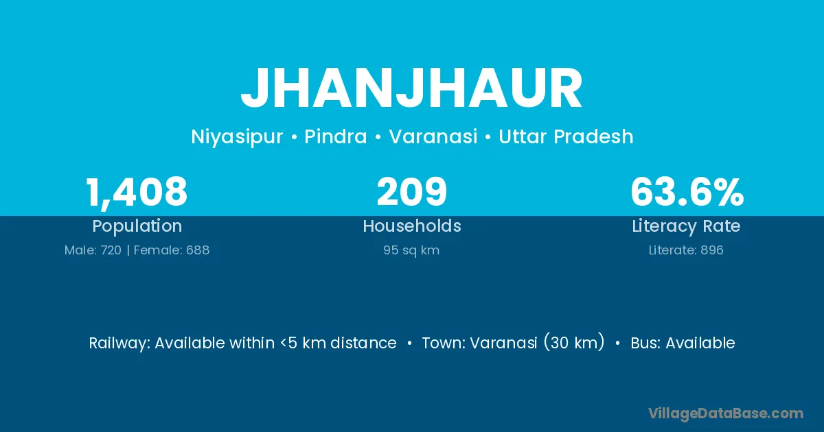 Varanasi (30 km) is the nearest town to Jhanjhaur village for major economic activities and is located approximately 30 km away.
