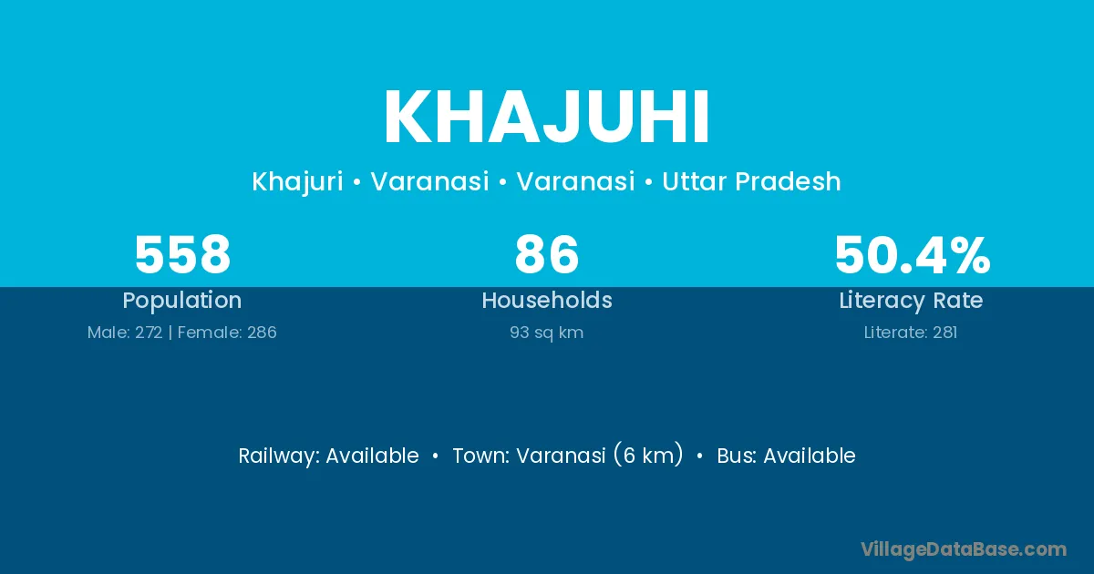 Varanasi (20 km) is the nearest town to Khajuhi village for major economic activities and is located approximately 20 km away.