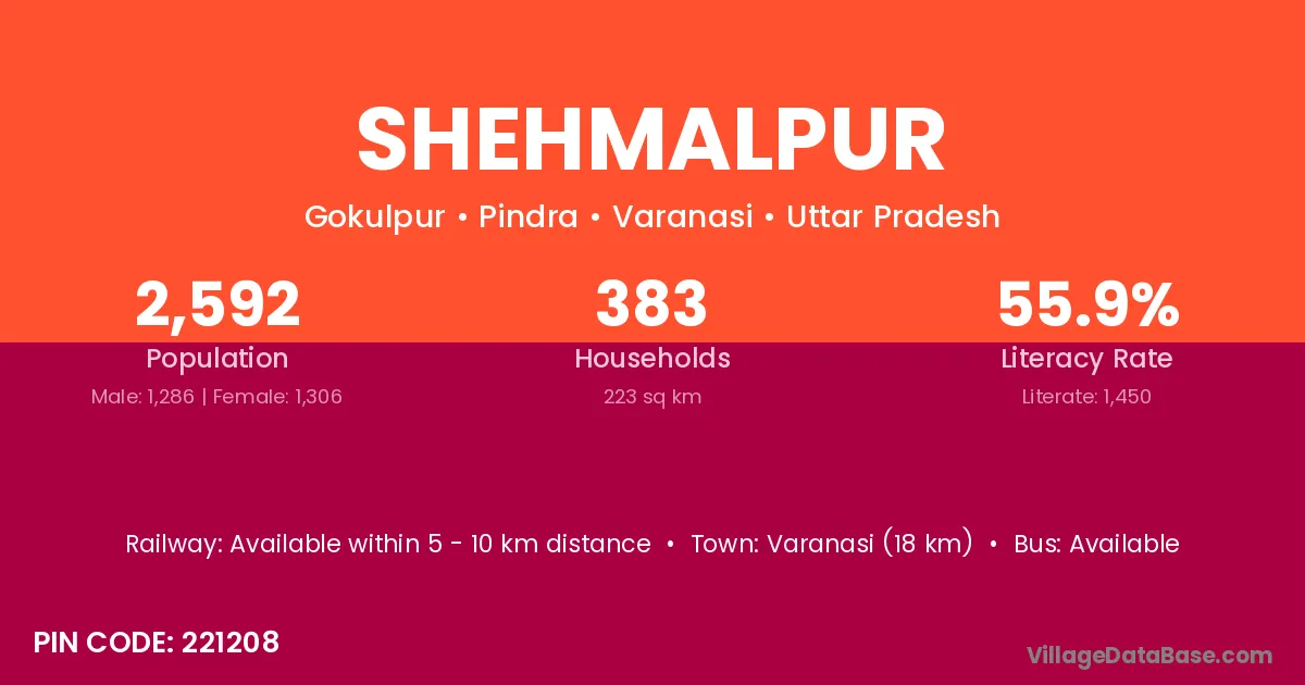 Varanasi (18 km) is the nearest town to Shehmalpur village for major economic activities and is located approximately 18 km away.