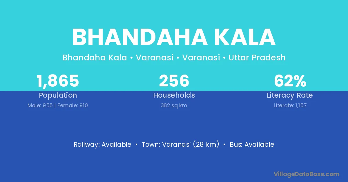 Varanasi (28 km) is the nearest town to Bhandaha Kala village for major economic activities and is located approximately 28 km away.