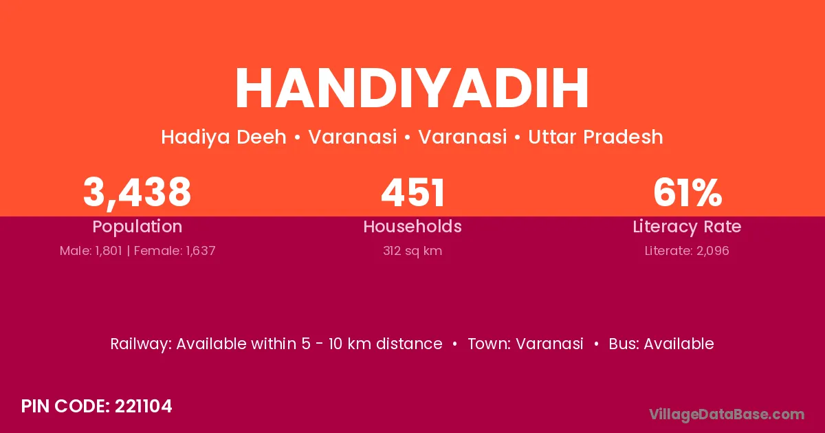 Varanasi is the nearest town to Handiyadih village for major economic activities