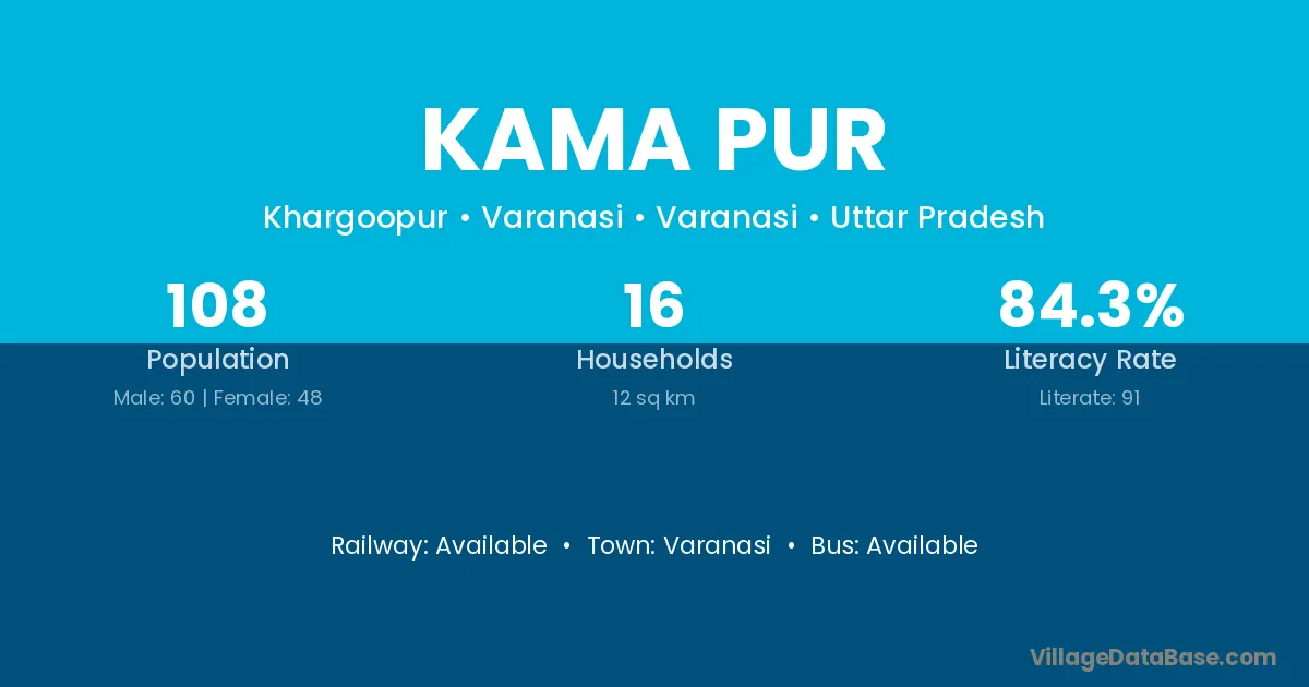 Varanasi is the nearest town to Kama Pur village for major economic activities