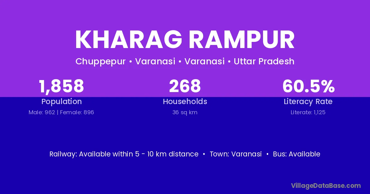 Kharag Rampur village has a total population of 1,858 people, of which 962 are males and 896 are females.