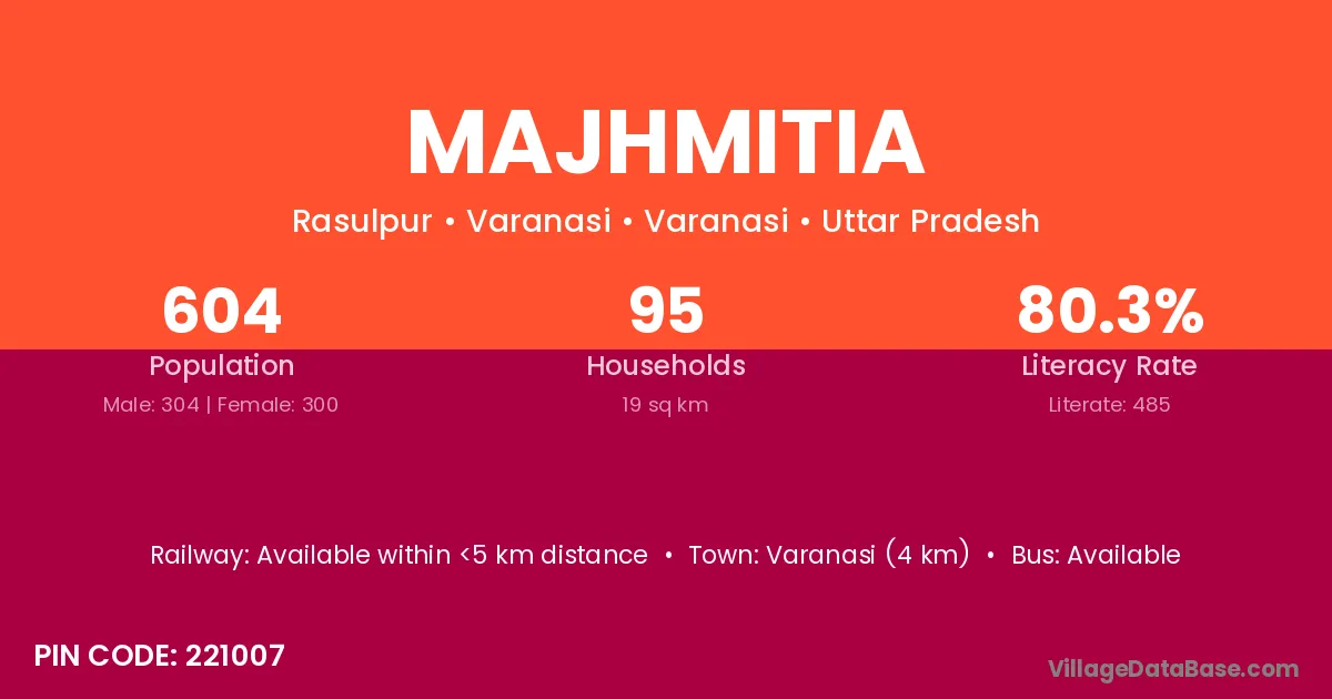 Varanasi (4 km) is the nearest town to Majhmitia village for major economic activities and is located approximately 4 km away.