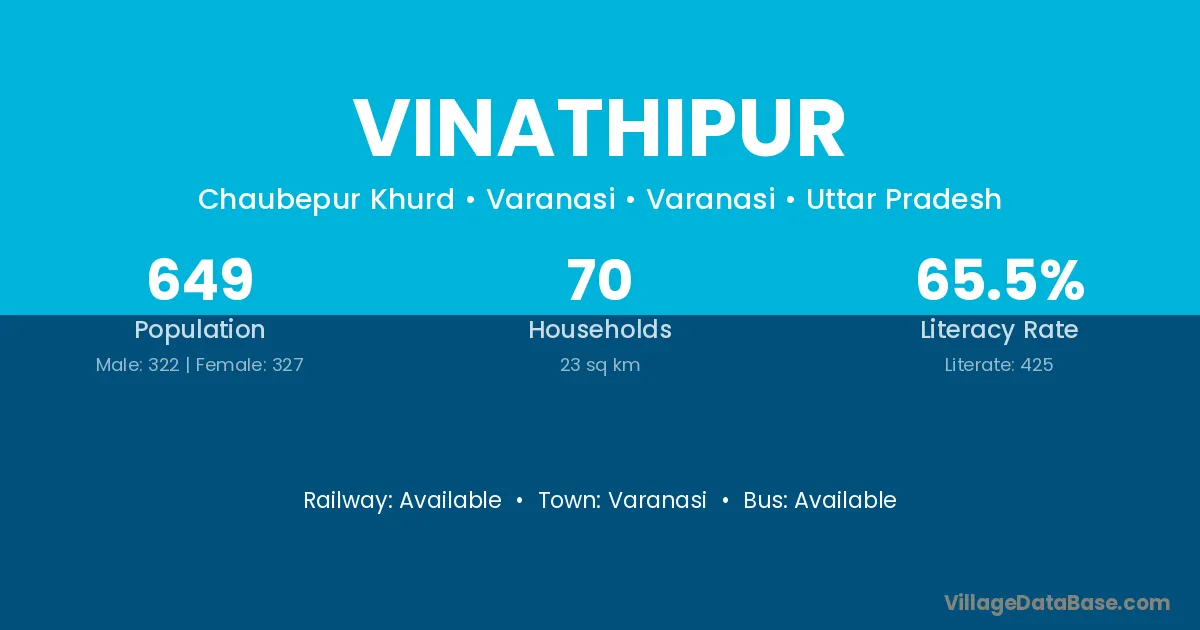 Varanasi is the nearest town to Vinathipur village for major economic activities