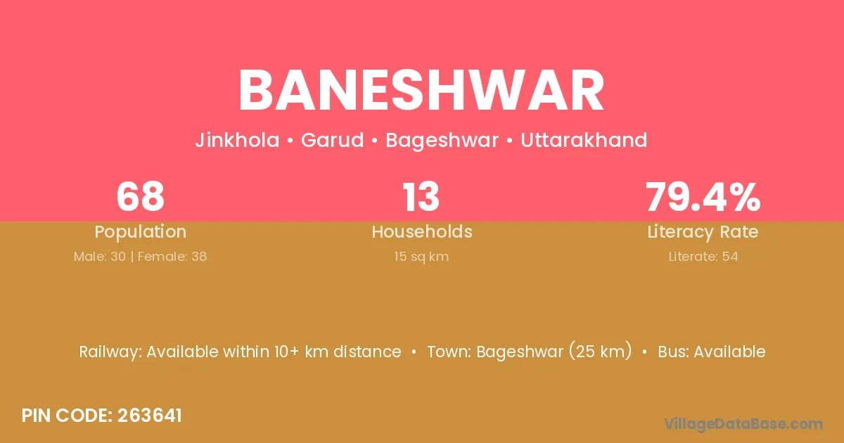 Bageshwar (25 km) is the nearest town to Baneshwar village for major economic activities and is located approximately 25 km away.