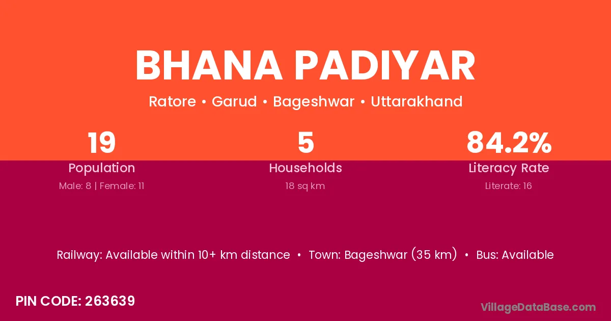 Bageshwar (35 km) is the nearest town to Bhana Padiyar village for major economic activities and is located approximately 35 km away.