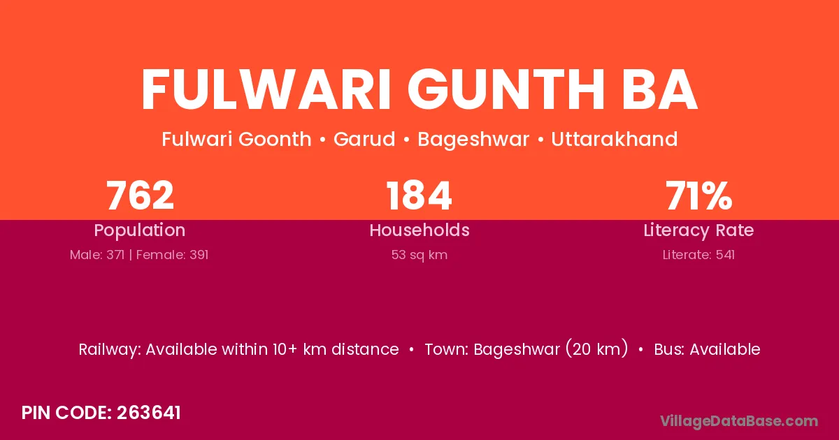 Bageshwar (20 km) is the nearest town to Fulwari Gunth Ba village for major economic activities and is located approximately 20 km away.