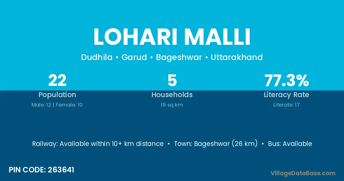 Bageshwar (26 km) is the nearest town to Lohari Malli village for major economic activities and is located approximately 26 km away.