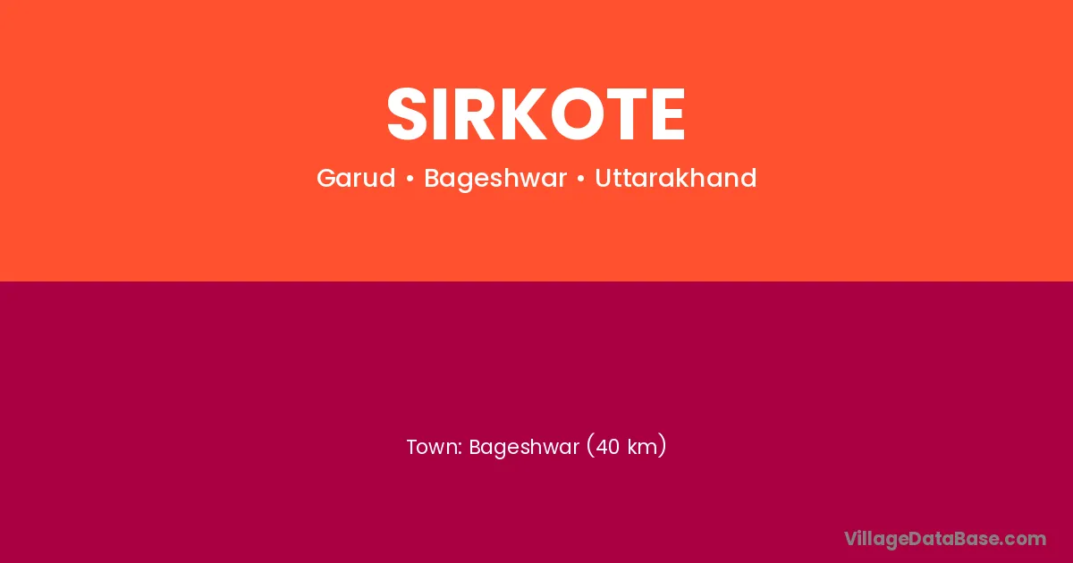 Bageshwar (40 km) is the nearest town to Sirkote village for major economic activities and is located approximately 40 km away.