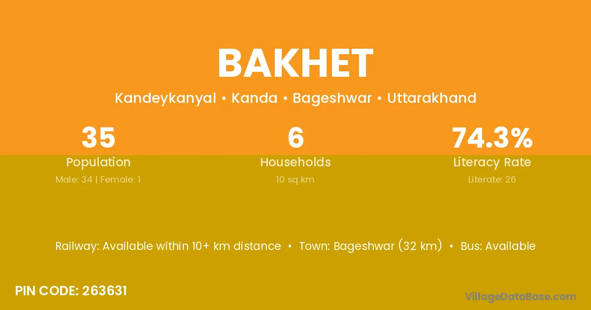 Bageshwar (32 km) is the nearest town to Bakhet village for major economic activities and is located approximately 32 km away.