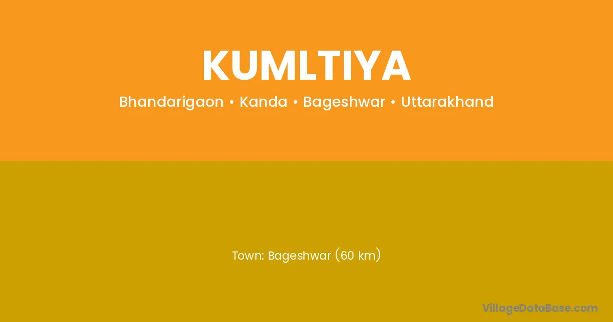 Bageshwar (60 km) is the nearest town to Kumltiya village for major economic activities and is located approximately 60 km away.