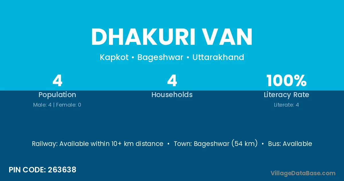 Dhakuri Van village has a total population of 4 people, of which 4 are males and 0 are females.