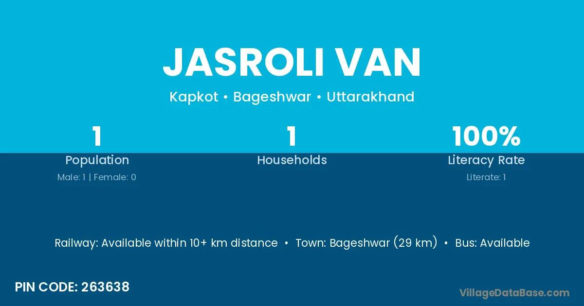 Bageshwar (29 km) is the nearest town to Jasroli Van village for major economic activities and is located approximately 29 km away.