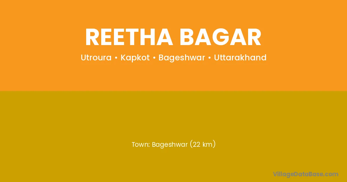 Bageshwar (22 km) is the nearest town to Reetha Bagar village for major economic activities and is located approximately 22 km away.