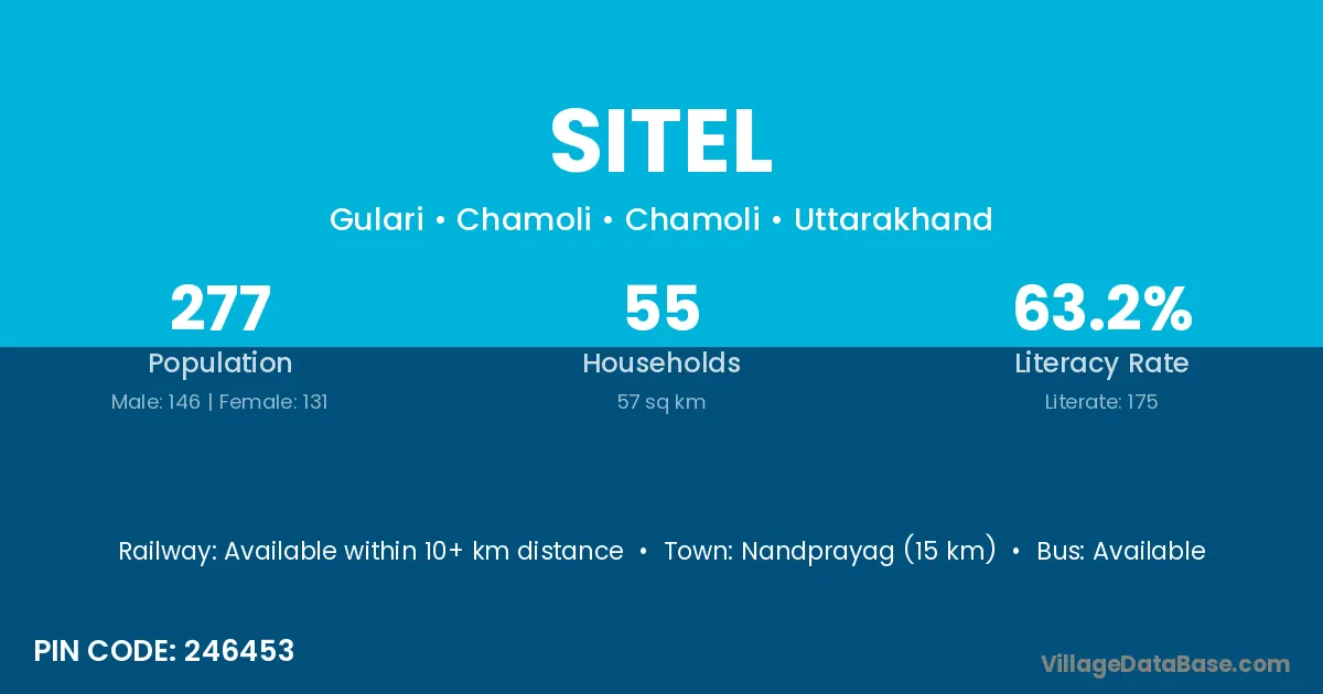 Nandprayag (15 km) is the nearest town to Sitel village for major economic activities and is located approximately 15 km away.
