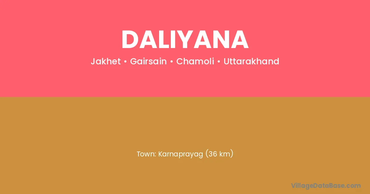 Karnaprayag (36 km) is the nearest town to Daliyana village for major economic activities and is located approximately 36 km away.