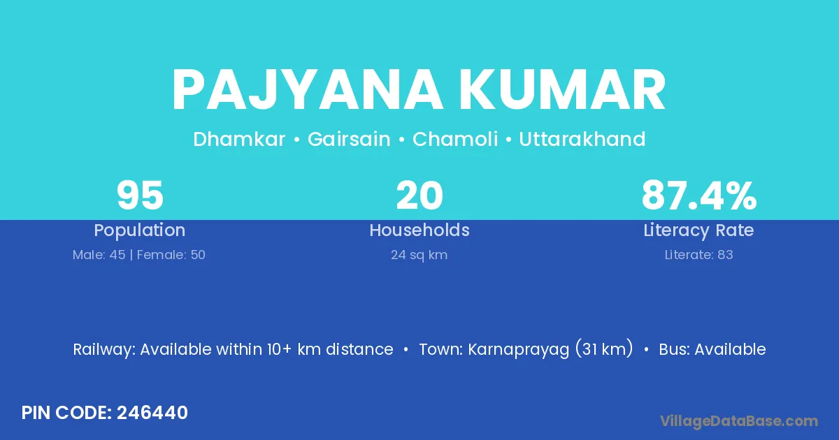 Karnaprayag (31 km) is the nearest town to Pajyana Kumar village for major economic activities and is located approximately 31 km away.