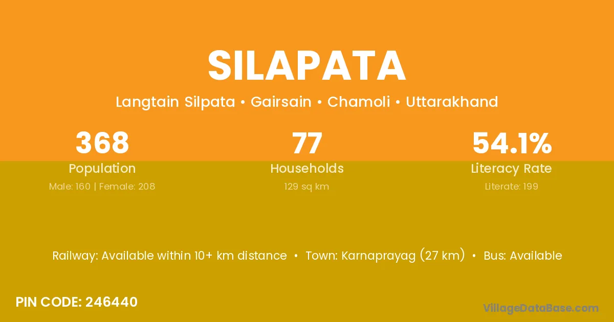 Karnaprayag (27 km) is the nearest town to Silapata village for major economic activities and is located approximately 27 km away.