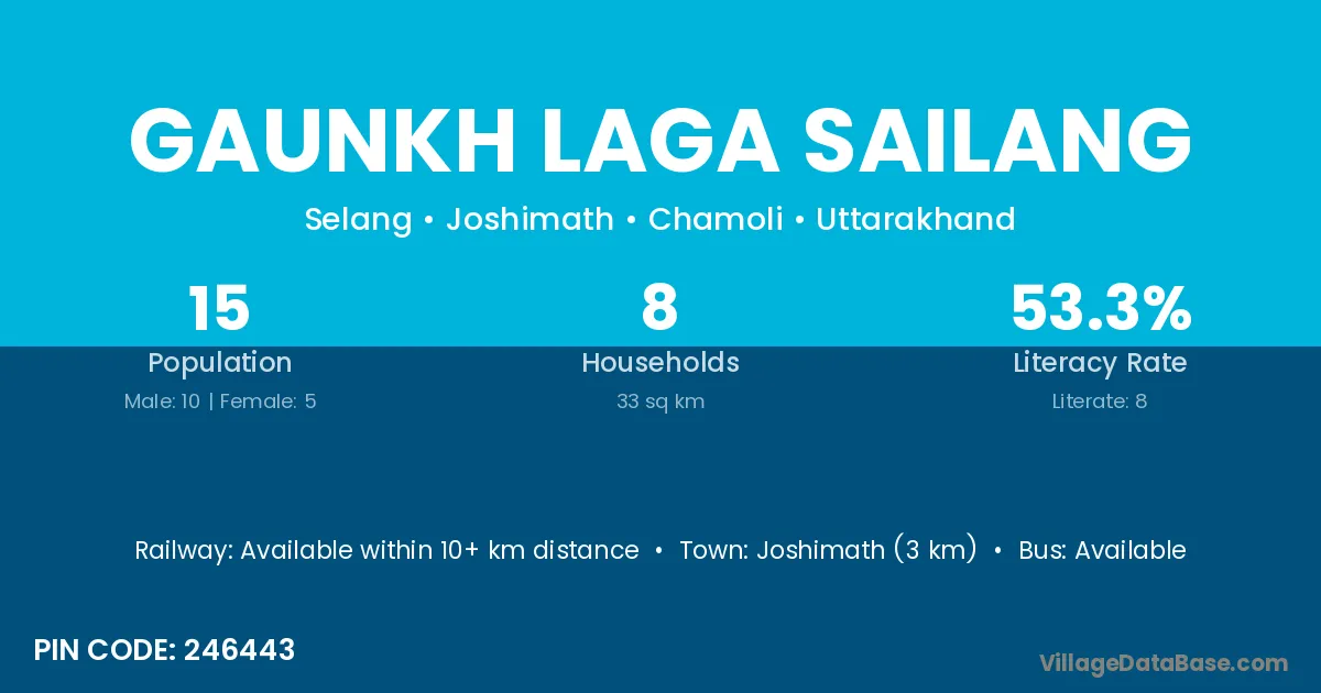 Joshimath (3 km) is the nearest town to Gaunkh Laga Sailang village for major economic activities and is located approximately 3 km away.