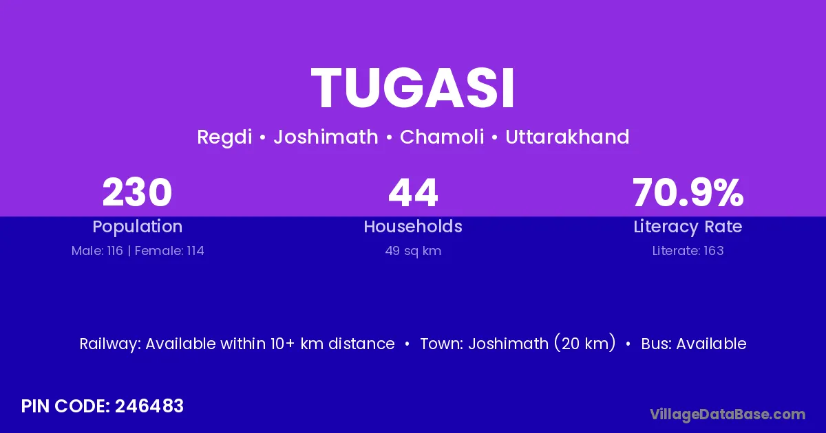 Joshimath (20 km) is the nearest town to Tugasi village for major economic activities and is located approximately 20 km away.