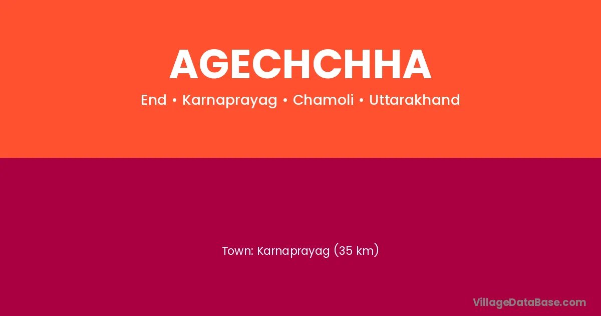 Karnaprayag (35 km) is the nearest town to Agechchha village for major economic activities and is located approximately 35 km away.