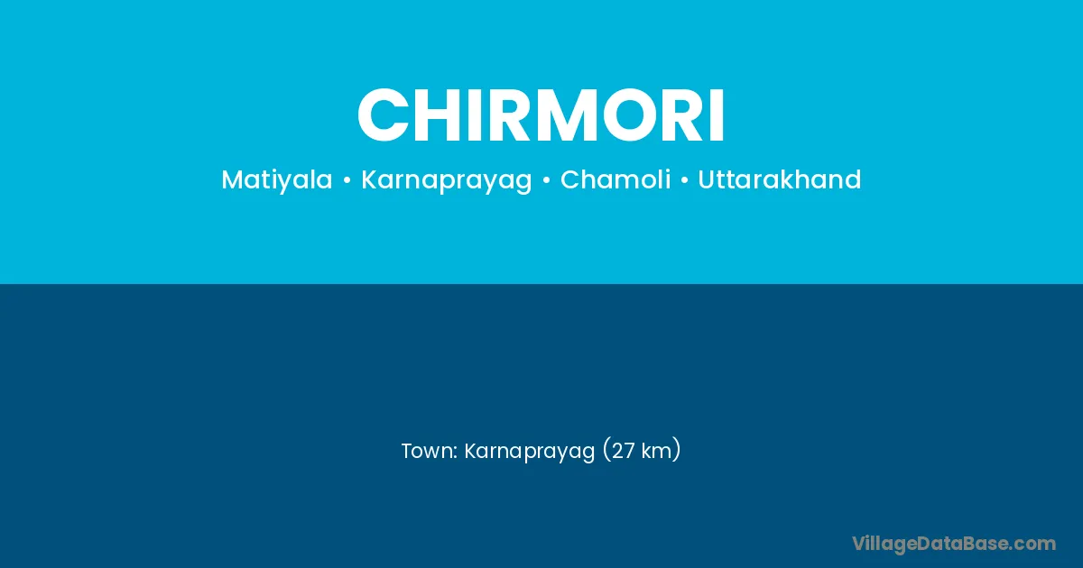 Karnaprayag (27 km) is the nearest town to Chirmori village for major economic activities and is located approximately 27 km away.