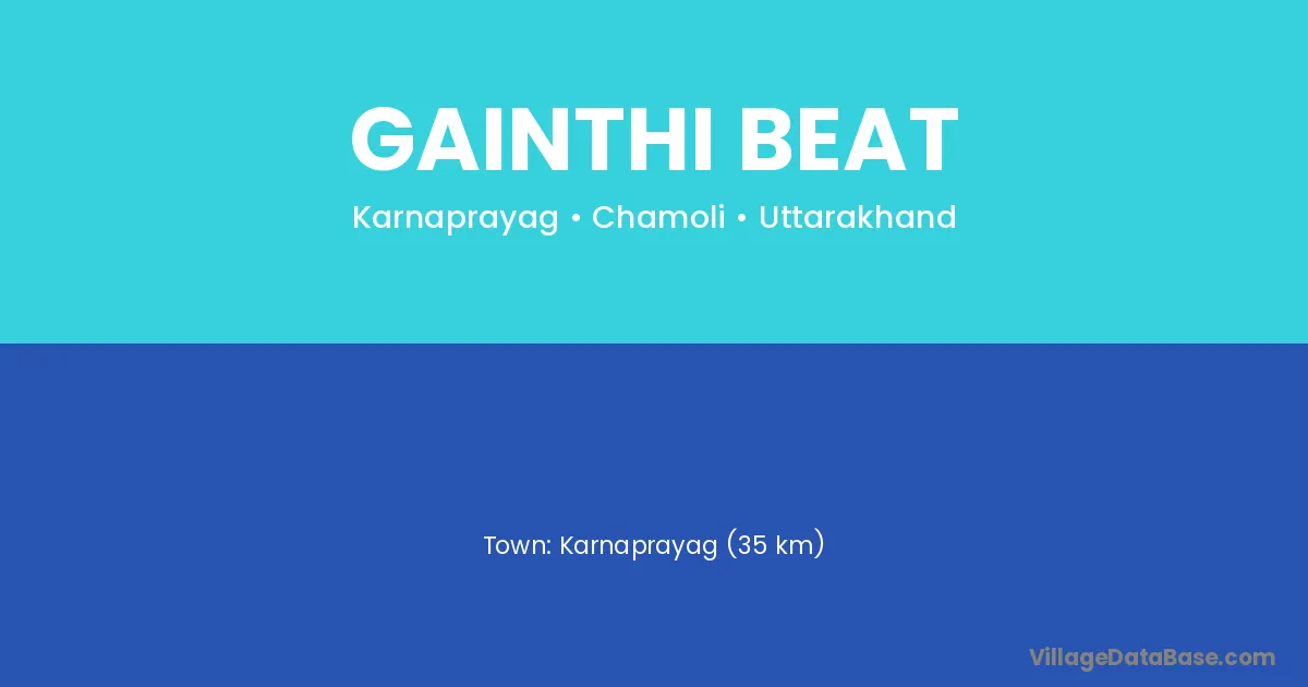 Karnaprayag (35 km) is the nearest town to Gainthi Beat village for major economic activities and is located approximately 35 km away.
