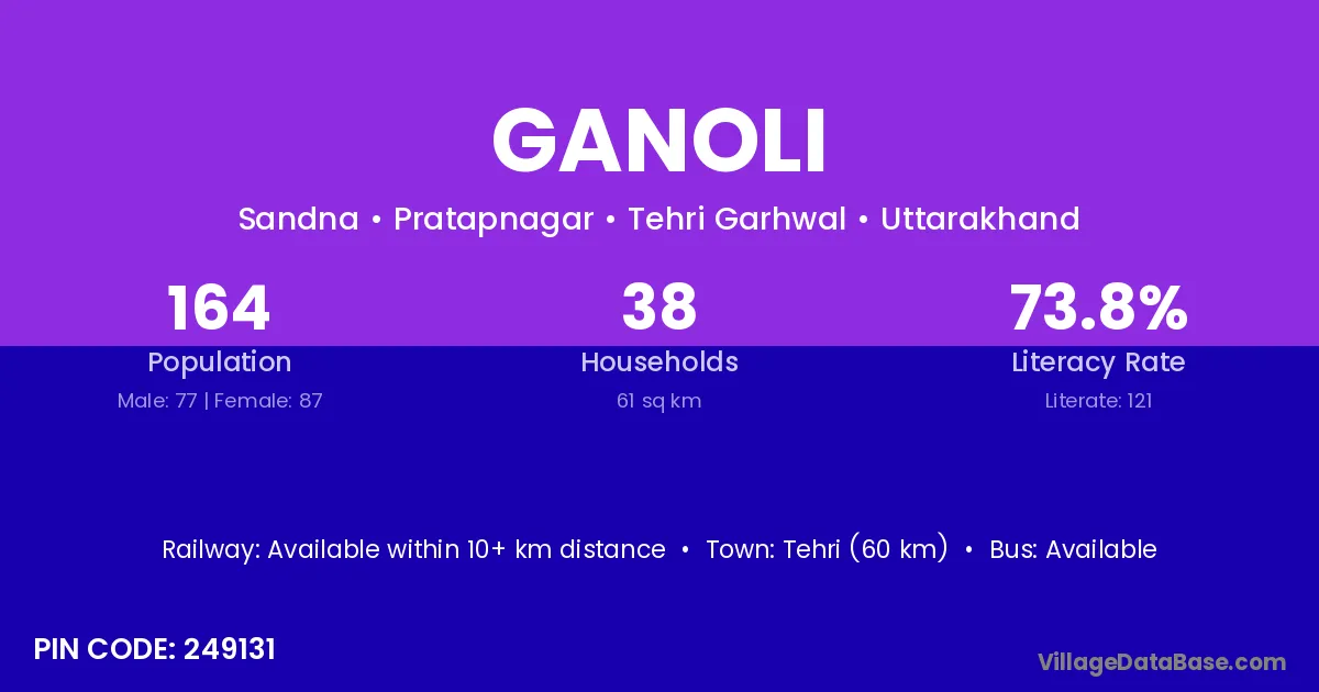 Karnaprayag (28 km) is the nearest town to Ganoli village for major economic activities and is located approximately 28 km away.