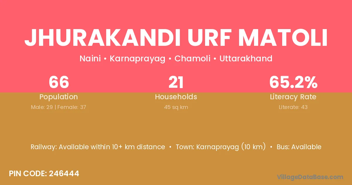 Jhurakandi Urf Matoli village has a total population of 66 people, of which 29 are males and 37 are females.