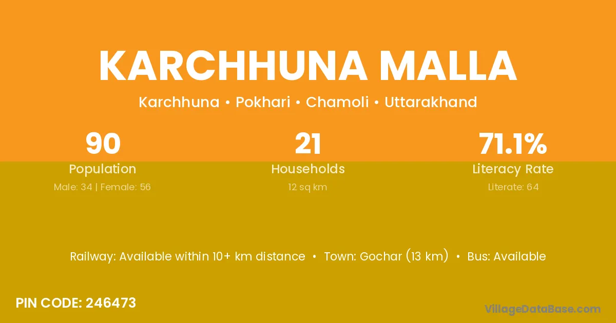 Gochar (13 km) is the nearest town to Karchhuna Malla village for major economic activities and is located approximately 13 km away.